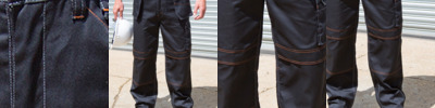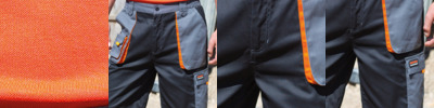 80% polyester/20% cotton twill. Water repellent, windproof and breathable.Double tab belt loops.Partially elasticated waistband.Zip fly with button over.Multi-use pockets with reflective tear release tabs.Two side pockets.Rear pocket.Contrast cargo pocket on each leg.Bar tack stress points.