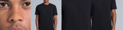 Fit: Regular Fabric: Mid weight, 200 GSM, 20-singles, 100% carded cotton (marles 15% viscose) Construction: Neck ribbing, side seamed, shoulder to shoulder tape, double needle hems, preshrunk to minimise shrinkage Tear-out AS Colour label