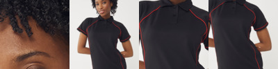 100% polyester Coolplus® piqué. Coolplus® modified polyester fibre draws moisture away from skin to keep you cool and dry.Self fabric collar.Two self colour button placket.Contrast piping on raglan seams, sides and cuffs.Side vents.Twin needle hem.60°C wash.