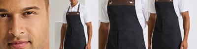 65% polyester/35% cotton. Easy care fabric.Faux leather trim and neckband.Neckband with adjustable stud closure.Large metal eyelets.Two pleat pockets.Width 72cm.Length 86cm.Domestic wash 60°C.