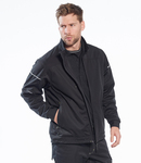 100% polyester. Mesh lining. Showerproof and windproof. Full length Ezee™ reverse zip. Media pocket. Two front zip pockets. Reflective trim on arms. Contrast panels on black/zoom grey. Quick dry elastic bound cuffs. Adjustable drawcord hem. Curved back hem.