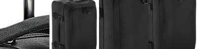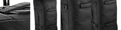 600D polyester. Aircraft cabin compatible.Padded grab handles.Foldaway backpack shoulder straps.Dual compartment design.Dual compression straps.Lockable main zip compartment.Quick access top zip pocket.Large front zip compartment with internal mesh divider.Internal zip pocket.Organiser section.Padded laptop sleeve compatible up to 15.6".Tear out label.Capacity 40 litres.