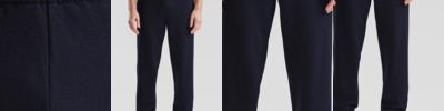 80% cotton/20% polyester. Elasticated waistband with inner drawcord.Two side pockets.Open leg ends.Cut out label.