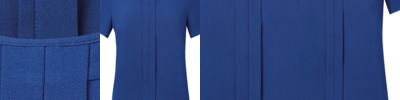 65% polyester/35% cotton. Easy care fabric.Fitted style with bust and back darts.Soft collar styling.Curved hem.Easy cut out neck label.
