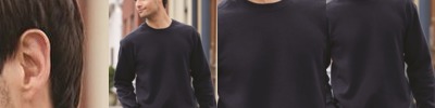 - Double needle stitching at shoulder, neck, waistband and cuffs, 1 x 1 rib with spandex