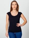 Fitted style. Double layer neck rib. Taped neck.