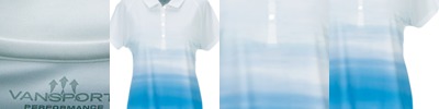 She?ll love the luxurious feel of this premium performance polo with an ombr� print reminiscent of days at her favorite resort. 95% polyester/5% spandex, 4� oz., Vansport? moisture management, ombr� sublimation print at front panel, jersey body, UV protection, antimicrobial, self-goods collar with collar band, Vansport? tagless neck label, four-button placket, raglan hemmed sleeves, single-needle top-stitching, even-hem bottom with tailored side vent. Imported. XS-3XL