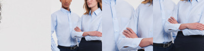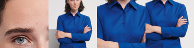 70% cotton/30% polyester. Easy care fabric.Tailored fit.Classic collar.Bust and back darts.Two button adjustable cuffs.Curved hem.