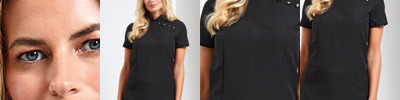 100% polyester plain weave. Easy care fabric.Mandarin collar.Satin piping to collar edge.Side yoke detail with four feature buttons and satin trim.Back zip closure.Princess seams.Bust darts.Side vents.Machine washable.