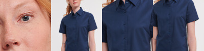 70% cotton/30% polyester. Easy care fabric.Tailored fit.Classic collar.Bust and back darts.Curved hem.