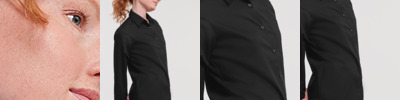 - One-piece, topstitched, lay-flat collar › Hemmed-sleeve ends