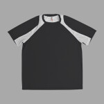 Crew neck short sleeve raglan. White contrast sleeve and back yoke. Topstitch helps ease movement. Relaxed, comfortable fit. 100% microfiber polyester px maX. Inherent moisture wicking to keep you dry and comfortable. Treated with BodyFresh