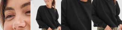 Tear-out label. Oversized sweat with cropped raw hem. Set-in sleeves, with dropped shoulders. 2x2 ribbed neck and cuffs. Single Jersey back neck tape.