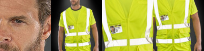 Lightweight mesh safety vest with 50mm sewn on reflective body bands. Self-coloured bound edges. Tear release patch pockets. ID pass pocket. Zipped closure. Radio loop. EN ISO 20471:2013 Class 2 .