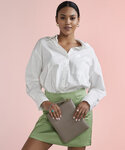 - Clean finished placket with reinforced bottom box