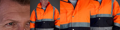 - Two reflective tape bands around the body, sleeves and one over each shoulder.