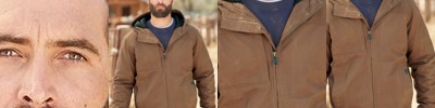 - Three-piece hood with scuba collar and inside, adjustable-toggle drawcord