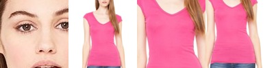 8705 Women's Cap Sleeve Sheer Mini Rib V-neck Tee