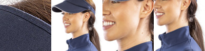 70% cotton/30% nylon low-profile 4-panel cap; Treated with a DuPont® Teflon® water and stain repellent; UV sun protection UPF 45+; Adjustable flexible nylon webbing outside hook and loop closure.; CoolPlus® terry cloth sweatband; Mesh on the two side panels; Shirt collar clip and cord in the rear;