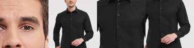 97% cotton/3% elastane poplin. Easy care stretch fabric.Fitted style.Semi-cut away collar.Self colour buttons.Back yoke.Double folded seams.Curved hem.
