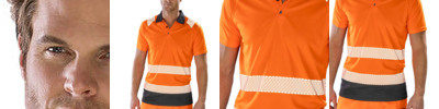 Top stitched shoulder and sleeve detail. Easy-stretch, printed safety bands. Contrast black panel and collar. 3-button placket with spare button. Stretch ribbed collar. Innovative dark panel design to mask grime. Made from highest quality yarns. EN ISO 20471: 2013 + A1:2016 Class 2 / Ris-3279-Tom Class 2 (orange only).