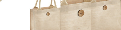 Laminated juco (72% jute/28% cotton). Refined jute/cotton blend for ease of decoration.Cotton carry handles (35cm long).Capacity 6 litres.