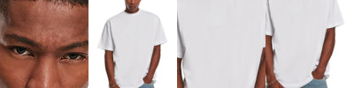 Combed cotton, wide cut, overcut shoulders with close round neckline.
