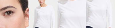 High cotton content, wide cut, rib on round neckline, wide rib on hem and sleeve hem.