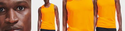 100% polyester. Textured breathable fabric.Self fabric bound neck and armholes.Twin needle hem.Tear out label.Suitable for sublimation printing.