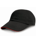 6 panel. Low profile. Unsupported front panels. Suitable for embroidery and print. Pre-curved peak with 4 stitched lines. Stitched eyelets. Contrasting colour sandwich peak. Fabric size adjuster with antique brass buckle. Decoration Guidelines: Decorating methods: Embroidery & Transfer print Decorators access point: Open.
