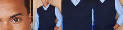 50% cotton/50% acrylic. Semi-fashioned neck and armhole detail.1x1 ribbed neck, armholes and hem.