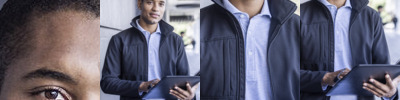 - Detachable warm backed woven stretch soft shell jacket.