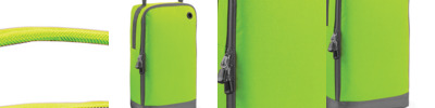 600D/420D polyester combination. Water resistant fabric.Wipe clean interior.Grab handle.Rear mesh pocket.Authentic metal ventilation eyelet.Capacity 8 litres.