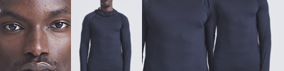 92% polyester/8% elastane. DynamicCool™ responsive blended fabric.Raglan sleeves.Cowl neck style hood with toggles.Reflective elements on hood.Reflective tab on back neck for ear phone cords.Thumbholes on cuffs.Overlock stitched seams.Twin needle hem.Tear out label.