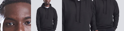 Twin-needle stitching detail. Double fabric hood. Ribbed cuffs and hem. Soft cotton faced fabric creates ideal printing surface. Simple tear-out label makes it perfect for rebranding. Flat lace drawcords. No pocket for maximum print surface area. Brushed inner fleece.