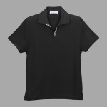 Extra accents on an open neck line dresses up this classic women?s performance pique shirt. 65% cotton/35% polyester, 6 oz. Vansport? moisture management double-tuck pique body, self-goods collar, narrow no-button placket w/striped placket ribbon, hemmed sleeves, single-needle top-stitching, even-hem bottom with tailored side vents. Imported. XS-3XL