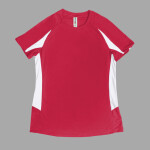 Raglan sleeve with self neck band. Insert contrast arrowpoint sleeve panels and side panels. Relaxed, comfortable fit. 100% microfiber polyester oXymesh. Inherent moisture wicking to keep you dry and comfortable. Treated with BodyFresh