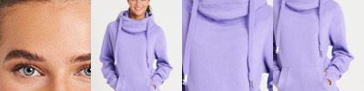 70% ringspun cotton/30% polyester.* Soft cotton faced fabric.Brushed back fleece.Drop shoulder style.Three panel double fabric hood with flat lace drawcord.Crossover neck detail.Front pouch pocket.Ribbed cuffs and hem.Thumbholes on cuffs.Twin needle stitching.Tear out label.