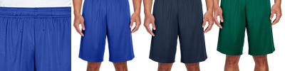 3.5 oz./yd2 / 130 gsm 100% polyester interlock; Moisture-wicking and UV 40+ protection; Side pockets; Team fit; Cationic dyes to ensure superior brightness and excellent color fastness; Elasticized waistband with flat internal drawcord; 9" inseam; Transitioning from heat-seal label to tear away label. Inventory may be mixed;