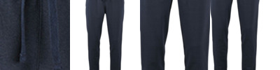 50% cotton/50% polyester.* Ribbed waistband with self colour drawcord.Two side pockets.Right rear patch pocket.Ribbed cuffed leg ends.Tear out label.