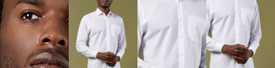 65% polyester/35% cotton. Easy iron fabric.Fused semi-cut away collar.Self colour buttons.Left chest pocket.Back yoke.Single needle stitched armholes.Twin needle sleeves and side seams.Two button adjustable cuffs with option for cuff links.Curved hem.