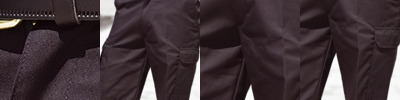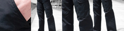 65% polyester/35% cotton. Traditional waistband - extendable at hip points.Belt loops.Zip fly with button over.Two side pockets.Rear concealed button pockets.Two side leg tear release cargo pockets.