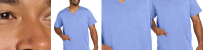 78/20/2 poly/rayon/spandex V-neckline Shoulder badge loop Left chest pocket with pen slot Top-loading front pockets with interior right pocket Side vents Wink heat transfer logo at left hem Modern fit