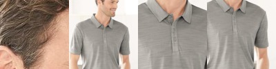 63% Polyester for durability, 32% Cotton for comfort, and 5% Elastane for stretch,220gsm pique knit fabric,Complies with standard AS/NZS 4399:1996 for UPF Protection,DTM flat knit collar and sleeve cuffs,Contrast colourways: stripe lower placket and herringbone trim at neck and side splits,Solid colourways: solid lower placket and herringbone trim at neck and side splits