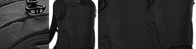 210D polyester box check dobby/300D polyester. Water resistant, durable lightweight fabric.Detachable waterproof rain cover.Grab handle.Padded adjustable shoulder straps.Adjustable waist and chest straps.Low profile ventilated back panel.Hydration bladder compatible.Trekking pole attachment points.Main zip compartment.Front zip pocket.Internal valuables zip pocket.Elasticated mesh side pockets.Key hook.Reflective accents.Tear out label.Capacity 25 litres.
