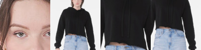 Side-seamed. Dyed-to-match drawcord. Raw hem. Dropped shoulder. Cropped body. Ribbed cuffs. TearAway label. Pre-shrunk.