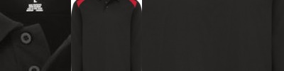 100% polyester pique, 4.1 oz./yd2/140 gsm; Moisture wicking, antimicrobial and UV protection performance; matching flat knit collar; spandex enhanced rib knit cuffs;