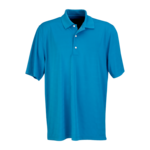 Trendsetters, take note. With an understated yet sophisticated pattern, this luxurious performance golf shirt will turn heads in the boardroom and on the green ? even if your game doesn?t. 100% microfiber polyester, 4� oz. Play Dry? moisture management nailhead jacquard body, UPF 50+, self-goods collar, three-button placket, polished etched buttons, hemmed sleeves, doubleneedle top-stitching, solid inner collar and placket, locker patch, even-hem bottom with tailored side vents, tagless label, shark plate at right sleeve. S-2XL