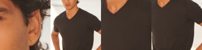 Feel good men's stretch t-shirt with enzyme wash for unique soft hand-feel. 96% cotton, 4% elastane for improved fit, comfort and shape retention. Modern long-line fit. V-neck with back neck binding and soft stretchy rib neckline. Features new tearable removable label.