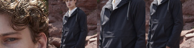 Hooded pullover jacket. Regular fit. Chest panel, front and back. Showerproof fabric, with mesh lining. Part-elasticated cuffs. 3-piece hood. Functional contrast lace drawcords around hood. Coated metal eyelets at hood opening. Centre front half- zip opening. Textured zip puller, with cord. Self-fabric storm flap, with hook and loop fastening. Elasticated cord through inside hem, with plastic toggles. Side-seam zip-opening, left hand side as worn. Large kangaroo style pockets. Inside patch pocket (with hook and loop fastening). Internal embroidery access. Back neck hanging loop.